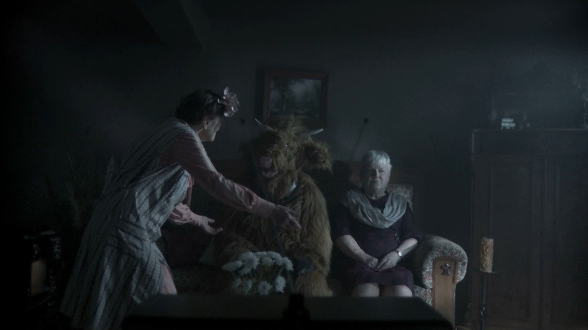 So beginnt die alte Frau am Fenster ihre Geschichte und wir tauchen ein in die Welt von Iwanuschka, dem schönen Dümmling, der ewig kannibalischen Baba Jaga mit ihrer Hütte auf Hühnerbeinen und der Mystik des Waldes. Die wunderschöne und herzensgute Aljona wird eines Tages von ihrer neidischen und eifersüchtigen Stiefmutter in den gefährlichen Wald geschickt um Pilze zu sammeln. Dort begegnet sie der Hexe Baba Jaga, die Aljona fressen will. Doch das schöne Mädchen kann mit Hilfe des verwunschenen Jünglings Iwanuschka entkommen. Sie erlöst ihn vom Fluch der Hexe und kehrt mit ihm zur Stiefmutter zurück. Diese wünscht sich für ihre eigene Tochter dasselbe Glück und schickt diese ebenfalls zur Hexe Baba Jaga, welche Aljonas Stiefschwester in eine Ziege verwandelt. Die böse Stiefmutter schlachtet und verspeist die Ziege und fällt bei der Erkenntnis, dass sie ihr eigenes Kind gegessen hat, tot um. Das Gute mehrt sich, aber Hochzeit muss nicht sein – soviel hat Aljona gelernt.